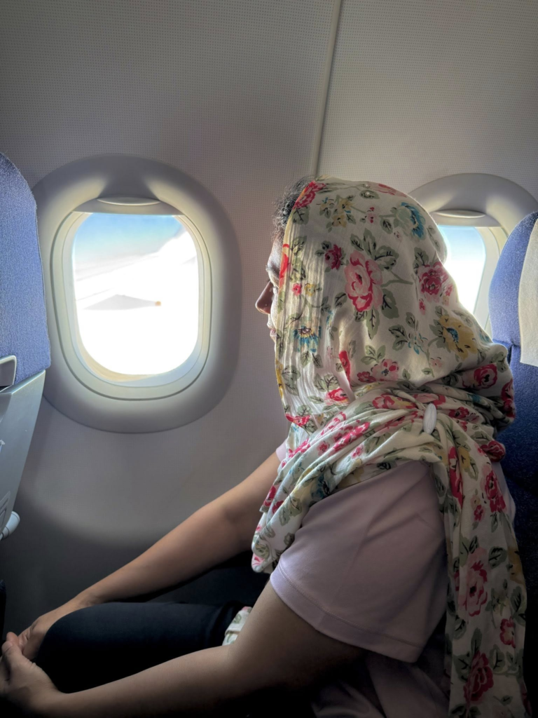 ۱۸ جولائی کی صبح دس بجے میں ائیر پورٹ پر تھی اور میرے میاں اور دونوں بچے مجھے رخصت کرنے آئے تھے۔ میرے میاں نے دفتر سے پندرہ دن کی سالانہ چھٹی لے لی تھی تاکہ میری عدم موجودگی میں وہ گھر پر رہ سکیں۔ بچوں سے گلے ملتے ان کو سو نصحتیں کیں اور تسلی دی کہ وہ بےفکر رہیں میں خیریت سے واپس لوٹوں گی۔ ائیر پورٹ پر میرے گروپ کے پانچ ساتھی اور بھی تھے۔ ائیر پورٹ پر تمام کام بخوبی سر انجام پائے اور جہاز نے اپنے مقررہ وقت پر اُڑان بھری۔ یوں میرے خوابوں کا سفر شروع ہو گیا۔