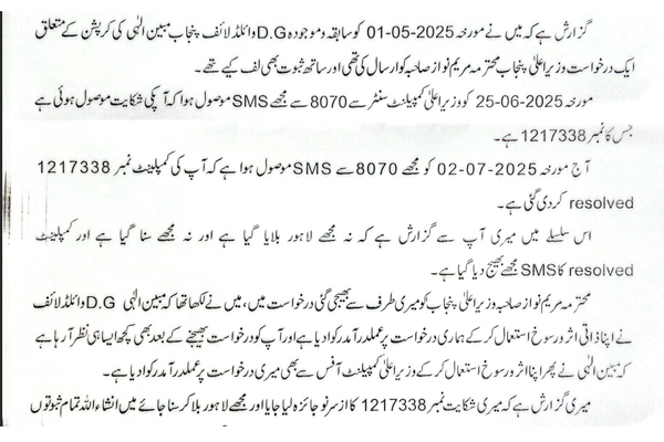 درخواست گزار کا مؤقف ہے کہ ڈی جی وائلڈلائف نے مبینہ طور پر اپنے اثر و رسوخ کے ذریعے متعدد انکوائریوں کو التوا میں ڈلوایا، جبکہ بعض معاملات اس وقت عدالتوں میں بھی زیر سماعت ہیں۔ انہوں نے مطالبہ کیا ہے کہ تمام الزامات کی شفاف، غیرجانبدارانہ اور آزاد تحقیقات کرائی جائیں تاکہ حقائق عوام کے سامنے آ سکیں اور اداروں پر اعتماد بحال ہو۔
