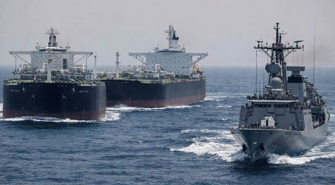پاک بحریہ کے حفاظتی حصار میں تیل کے جہاز فجیرا سے کراچی منتقل