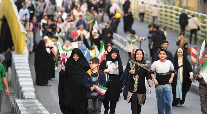دارالحکومت تہران میں لوگوں نے امام حسین سکوائر سے آزادی سکوائر تک مارچ کیا، اس دوران انہوں نے ایرانی پرچم لہرائے اور سابق سپریم لیڈر علی خامنہ ای، جنہیں فروری کے آخر میں امریکہ اور اسرائیل کے حملے میں شہید کیا گیا تھا اور نئے رہنما کی تصاویر اٹھا رکھی تھیں۔