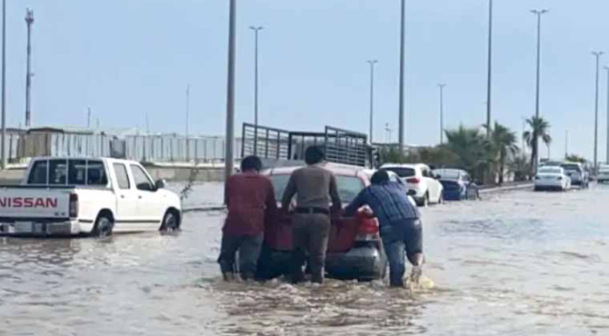 سعودی شہر ینبع میں بھی طوفانی بارش، متعدد عمارتوں کی چھتیں گر گئیں، کئی گاڑیاں تباہ