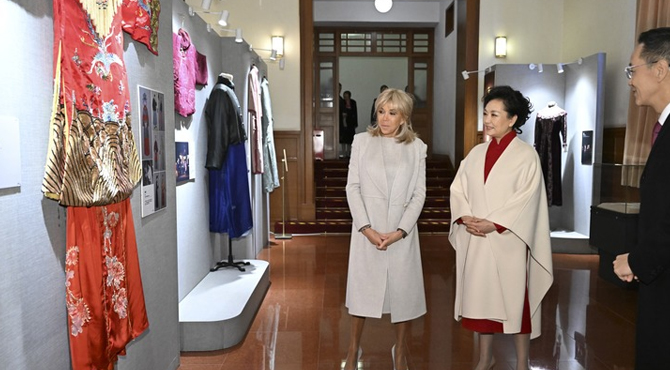 چینی اور فرانسیسی صدور کی بیگمات کا بیجنگ پیپلز آرٹ تھیٹر کا دورہ