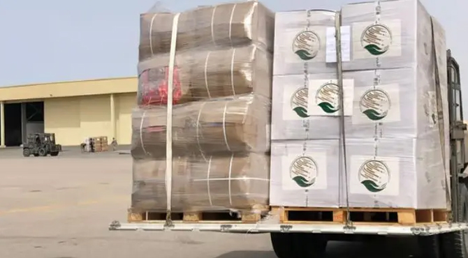 جنگ سے متاثرہ غزہ کے شہریوں کے لیے 43 واں سعودی طیارہ العریش پہنچ گیا