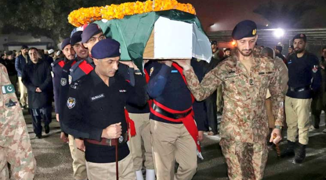 پشاور: ملزمان کی فائرنگ سے شہید ہونے والے سی ٹی ڈی اہلکار کی نماز جنازہ ادا