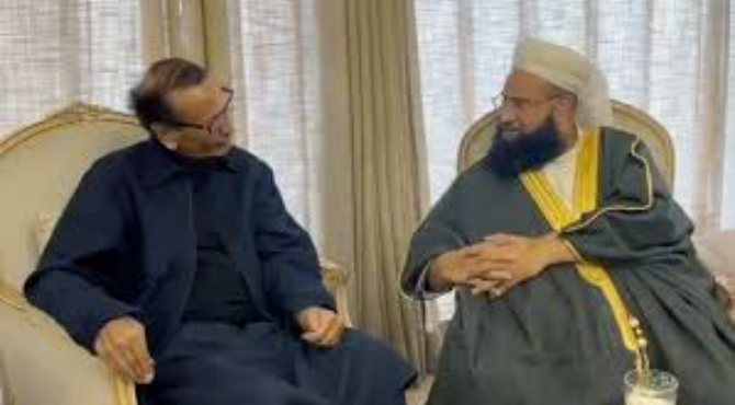 چوہدری شجاعت حسین سے حافظ طاہر اشرفی کی ملاقات، خیریت دریافت کی