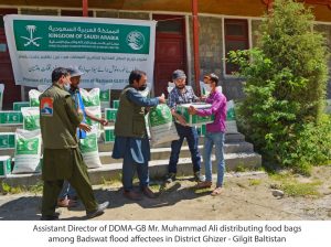 King Salman Humanitarian Aid & Relief Centre (Ksrelief) had distributed food bags in collaboration with National Disaster Management Authority in Badswat valley, Ishkoman north of Ghizer, Astore and Diamer districts.