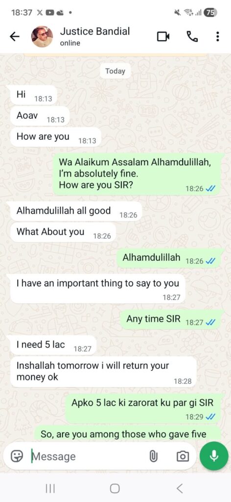 According to sources and initial complaints filed by Bandial, an unknown hacker gained unauthorized access to his WhatsApp account and began sending messages to various individuals posing as him and requesting financial transfers under false pretenses.
