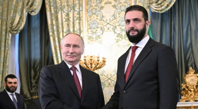 Syria’s interim leader arrives on his first visit to Russia, set to meet with Putin