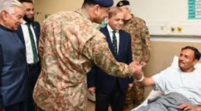 PM Shehbaz visits CMH, inquire after health of injured soldiers, civilians