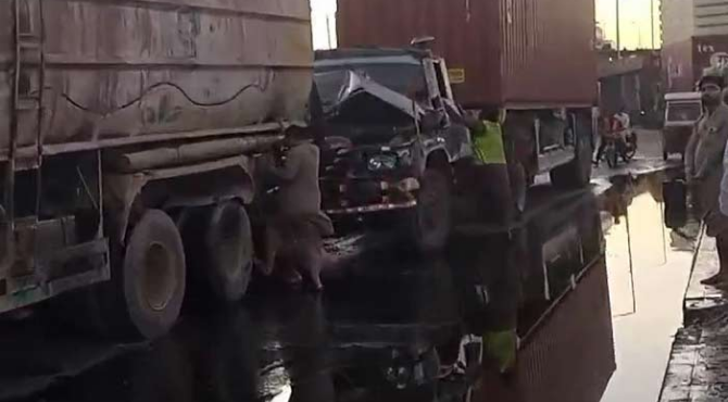 Oil spills at Karachi’s Native Jetty Bridge after tanker-trailer truck accident